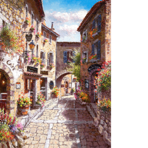 The internal prism through which Park refracts the scene before him produces a soft, romantic light, a manifestation of the sense of harmony and serenity that he seeks to experience and convey. While some artists seek to challenge and confront the viewer, Park seeks to reassure. Soon the canvas is filled with beautiful, refreshing, invigorating color, as if you could feel the gentle breezes that are blowing in from the Mediterranean. Park’s ability to capture light and paint subject matter of a broad range has contributed to his tremendous success and acknowledgment throughout the world. Of his technique, Park states, “If I can capture the sky, from whose light all color flows, I know the rest of the picture will fall into place. Next I paint the sea. Finally, I fill in that which lies between.”