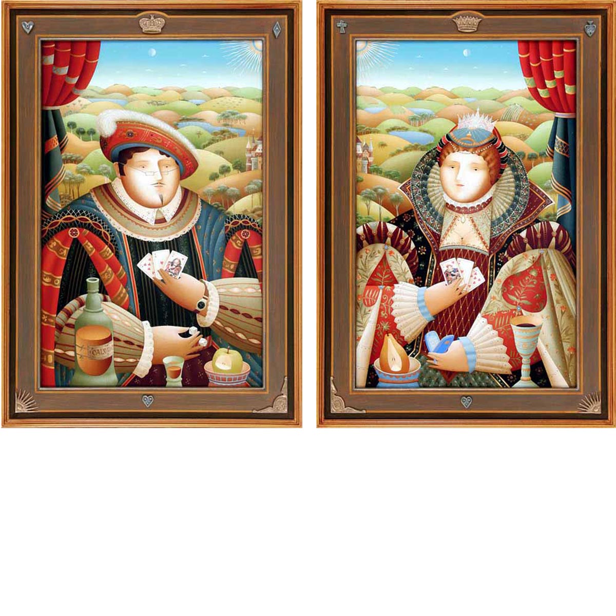 King & Queen of Hearts by Anton Arkhipov is a limited edition, two-piece suite, of mixed media on canvas. The pair is available unframed, in a modern frame, and a custom-built artist frame.