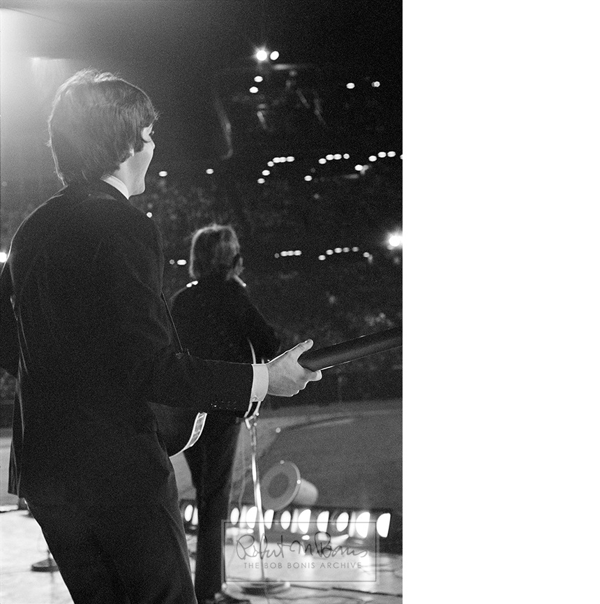 Paul McCartney and George Harrison in Concert at Metropolitan Stadium in Minneapolis, Minnesota August 21, 1965