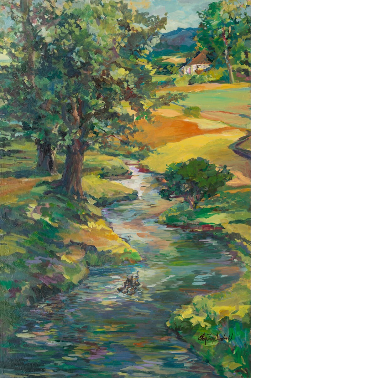 Wonderful Diedrich painting capturing the beauty of nature and a rushing river in the valley