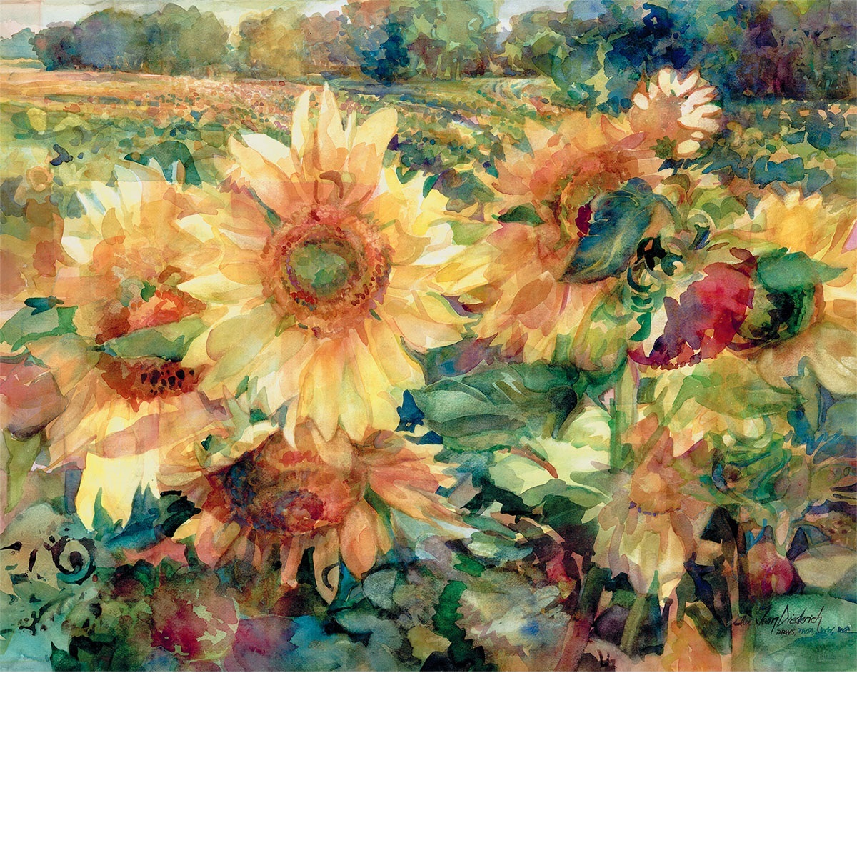Magnificent Watercolor of Sunflowers Blossoming in the Fields by Ellen Jean Diederich