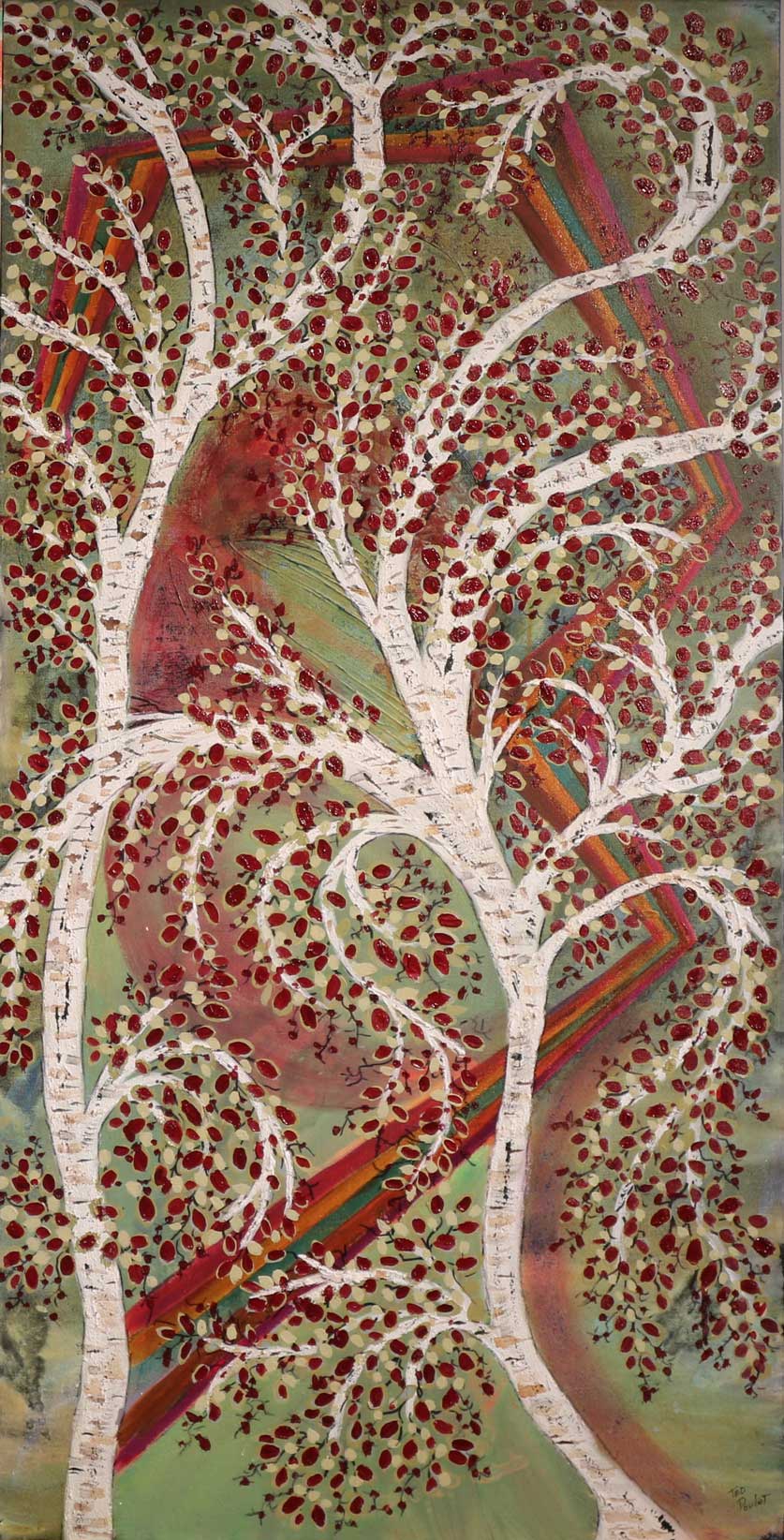 Ted Pouilot’s venture into the world up North. A combination of painting and copper serve to enhance the feel of the Forest in this wonderful acrylic painting brought to you by famous designer Ted Pouilot