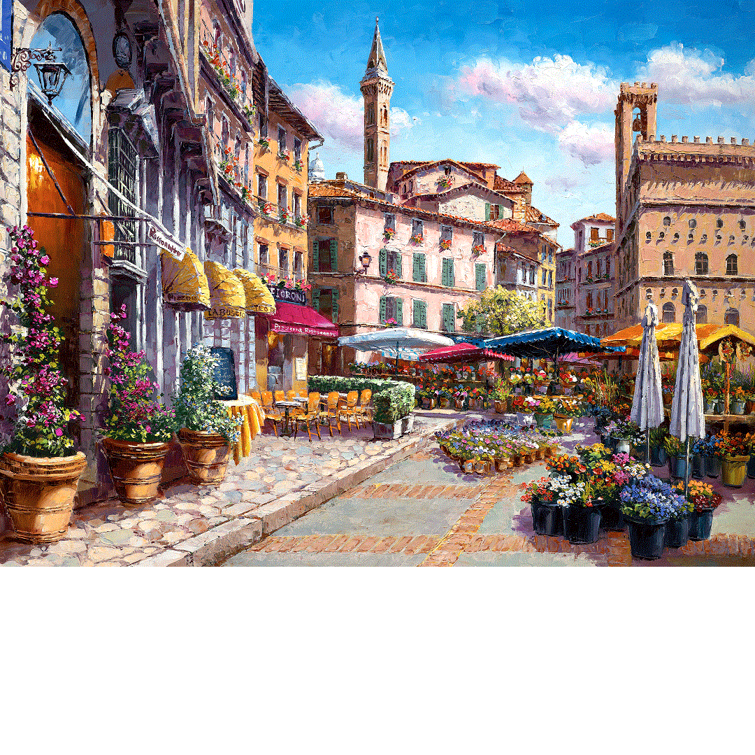 Beautiful hand embellished graphic painting of the Florence Italy Flower Market