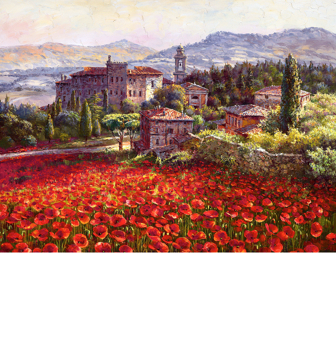 Gorgeous hand embellished giclee of a villa in the Tuscan Countryside near Siena by impressionist S Sam Park.