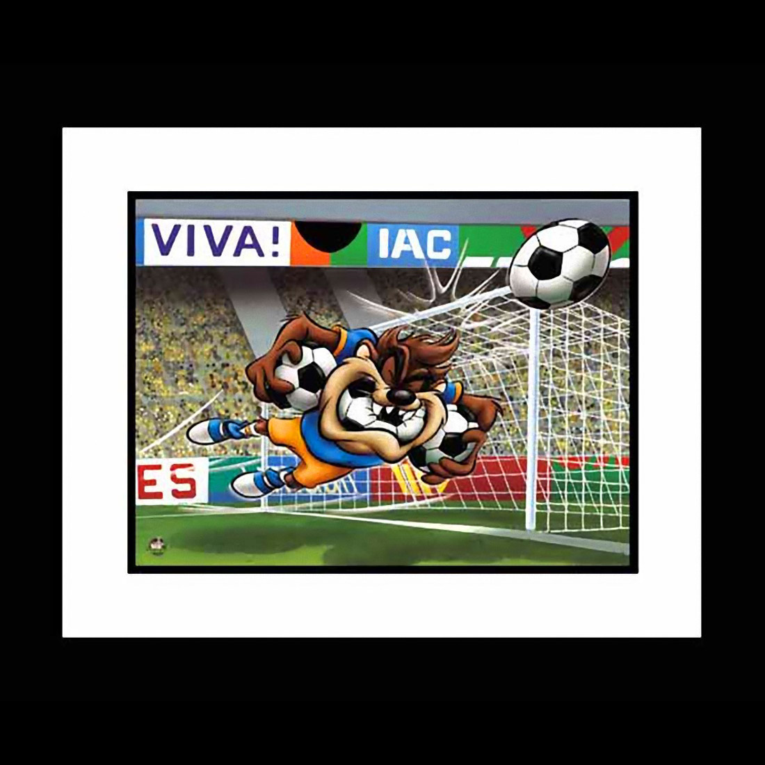 Taz Soccer is part of our collection of art from Warner Bros.’s classic Looney Tunes and Merrie Melodies cartoons. Prints are giclee on paper and price listed above is for the unframed version.