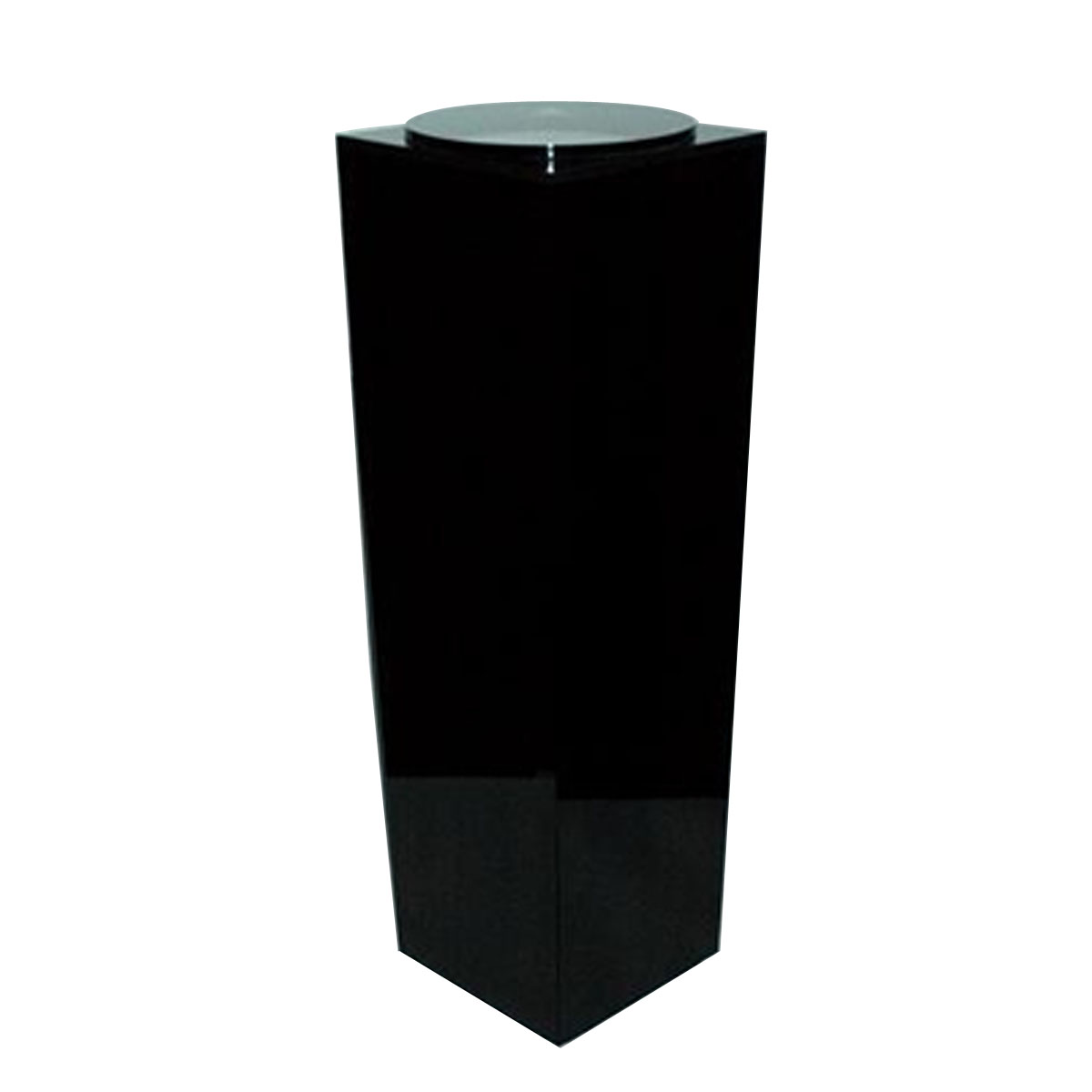 Tapered gloss black pedestal, 14″ x 14″ top tapers to an 11″ x 11″ base. Includes turntable. Other laminate colors are available. Wood is available for an additional $300.