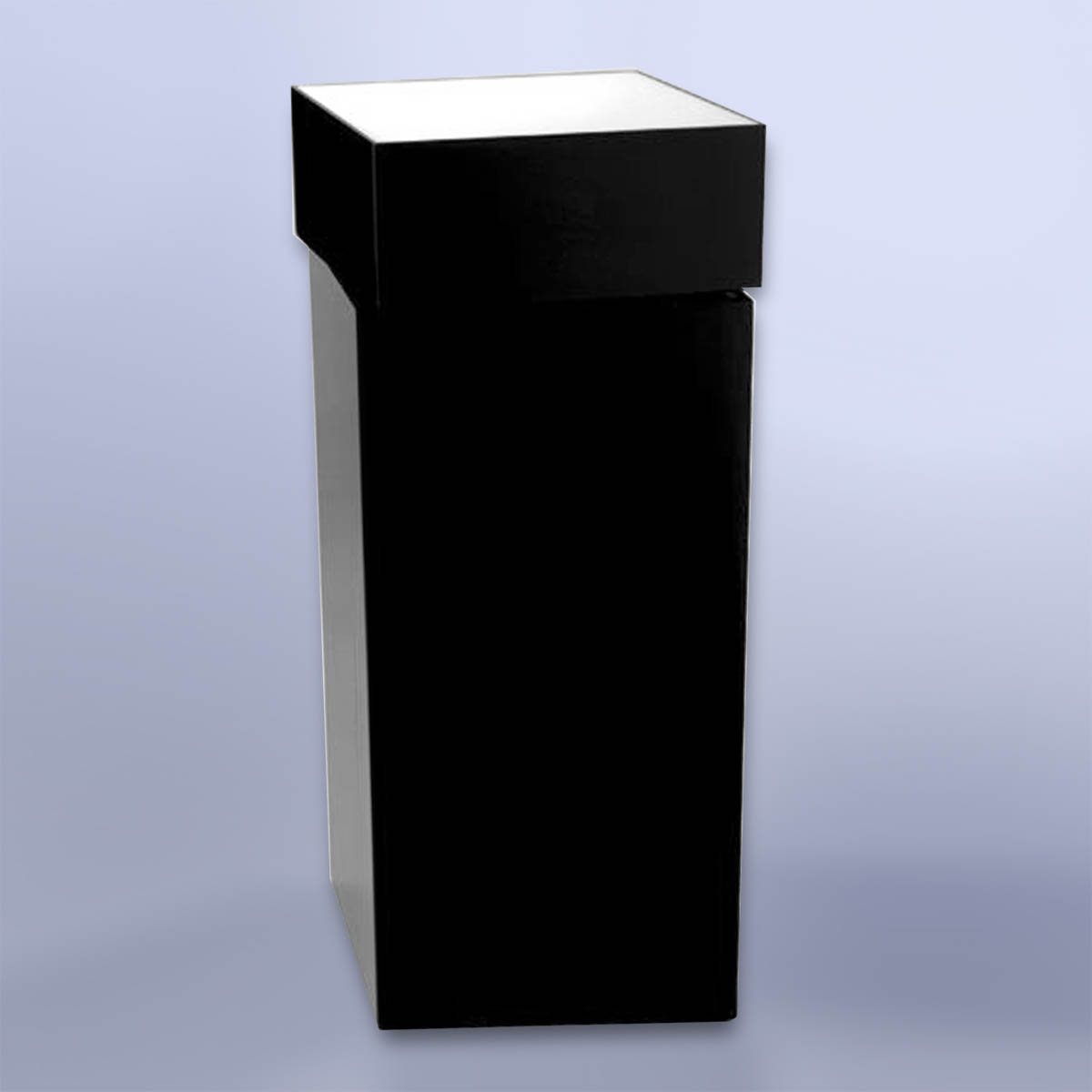 Model 114 is a lighted pedestal with a 12″ x 15″ turntable display surface. Black, other laminate colors are available. Wood or mirror surface available for an additional $300.