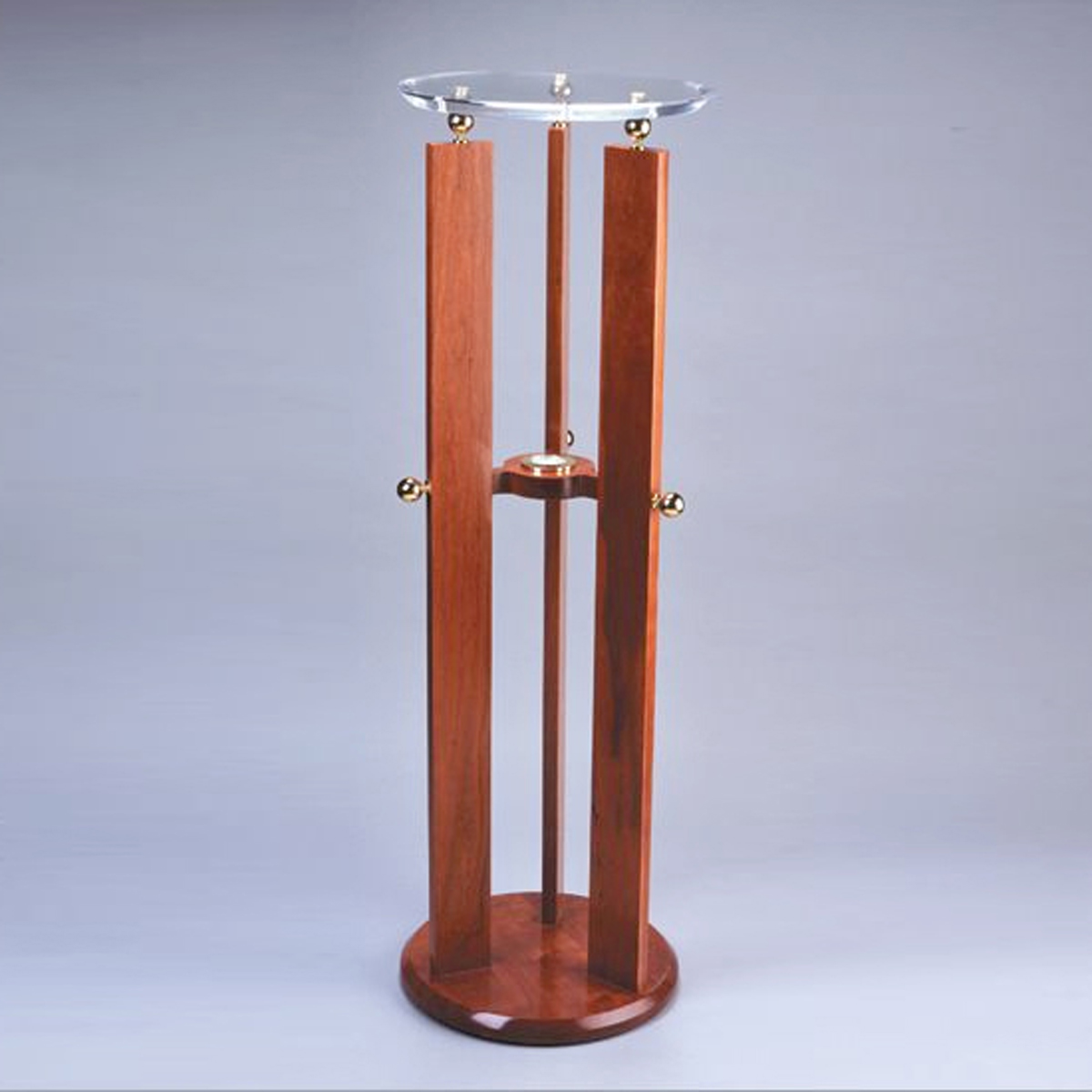 Model 211 pedestal is built with wooden supports and a 14-inch clear acrylic display platform. Halogen light illuminates display platform from below.