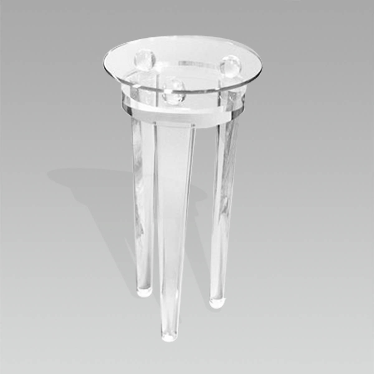 Model 787 is a three legged pedestal in clear acrylic with a 20 inch diameter glass top. Frosted available for an additional $150.